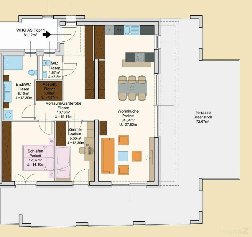 + Zugang zur Terrasse vom Wohn-Essbereich und zwei Schlafzimmern