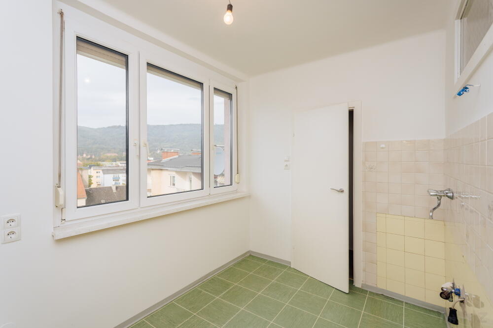 Diese sehr gut geschnittene Wohnung im 7. Obergeschoss (mit Lift), westseitig ausgerichtet. Vom Balkon genießen Sie einen wunderbaren Ausblick Richtung Schloss Eggenberg. Das Haus wurde bereits energetisch verbessert (Vollwärmeschutz) und mit Kunststofffenstern ausgestattet. Nicht zugeordnete Außenstellplätze stehen den Eigentümern vor dem Haus zur Verfügung (ausschließlich über die Schrankenanlage befahrbar).