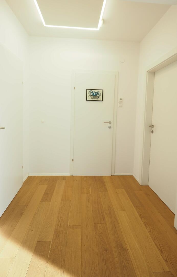 Vom Vorraum mit extra WC und Abstellraum kommt man in einen offenen und modernen Wohn/Kochbereich mit neuwertiger Küche. Ein großzügig dimensionierter Doppelflügelausgang führt auf die überdachte Loggia mit viel Platz zum Verweilen in der Abendsonne. Eine Markise kann zur Beschattung ausgefahren werden. Das Schlafzimmer ist ebenfalls groß und beherbergt einen modernen Kasten. Alle Außenfenster/Türen können mit Jalousien verdunkelt werden. Das Bad ist modern mit Waschtisch, bodenebener Dusche und Handtuch-Heizkörper ausgestattet, das extra WC mit Handwaschbecken im gleichen Stil gehalten. Ein Abstellraum mit Waschmaschinenanschluß und ein Kellerabteil stehen auch zur Verfügung. Vor dem Haus gibt es Parkplätze für die Bewohner!