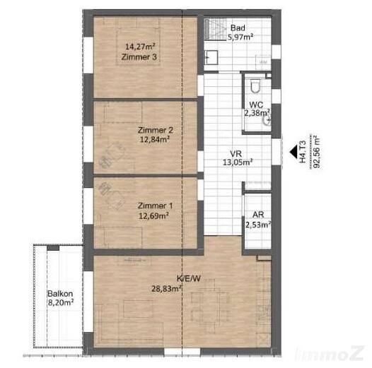 Moderne 4 Zimmerwohnung im 1 OG bestehend aus dem VR, Wohnzimmer mit Küchenschlüssen, 3 Schlafzimmern, Bad mit Fenster, WC, AR., 8,2m² großer Balkon.