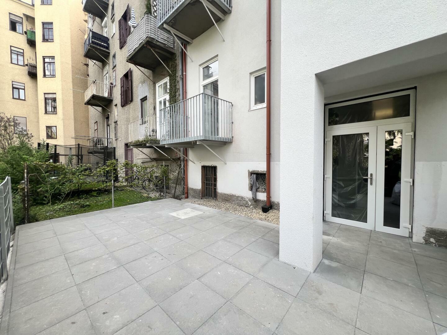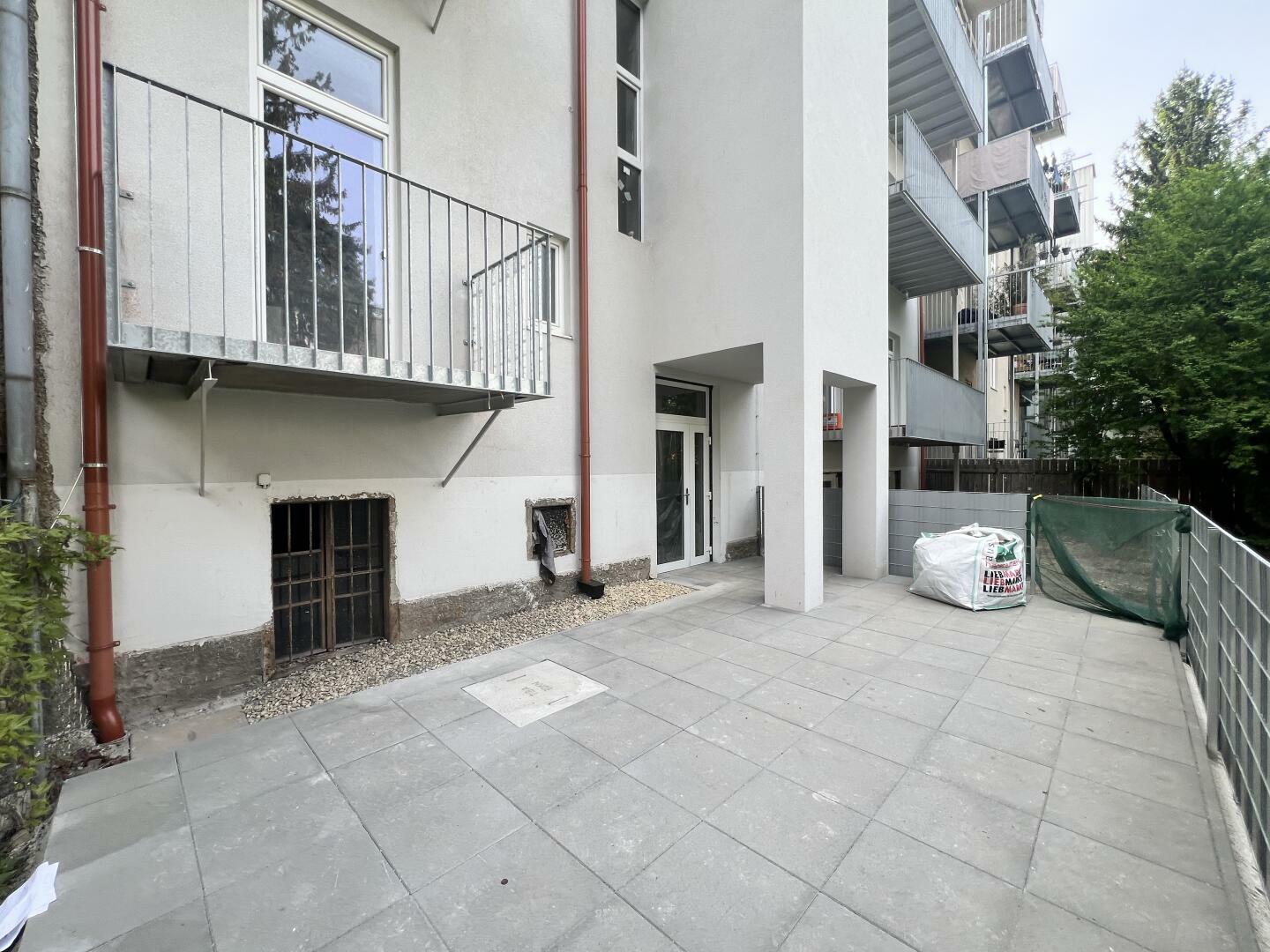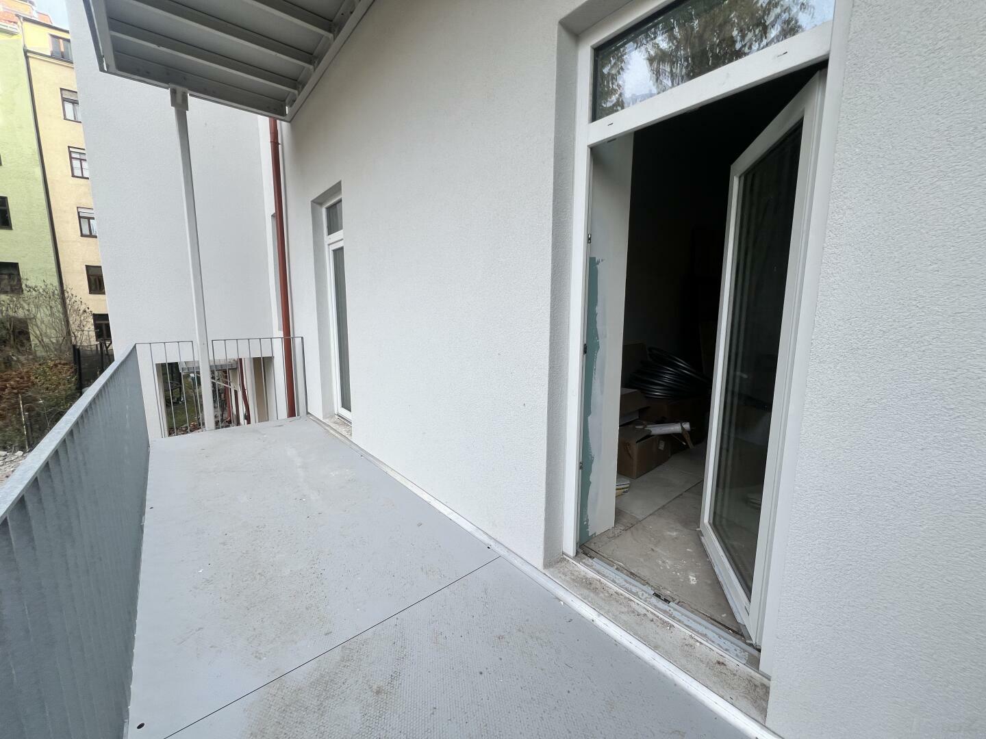 Vorraum, Badezimmer mit Dusche und inklusive WC, 3 wundervolle Altbau Zimmer (tolle Raumhöhe, Parkettboden) (2 davon mit zusätzlichem Zugang zum neu errichteten Balkon (Innenhofseitig), geräumiger Wohn-Ess-Küchenraum (unmöbliert), Kellerabteil.
