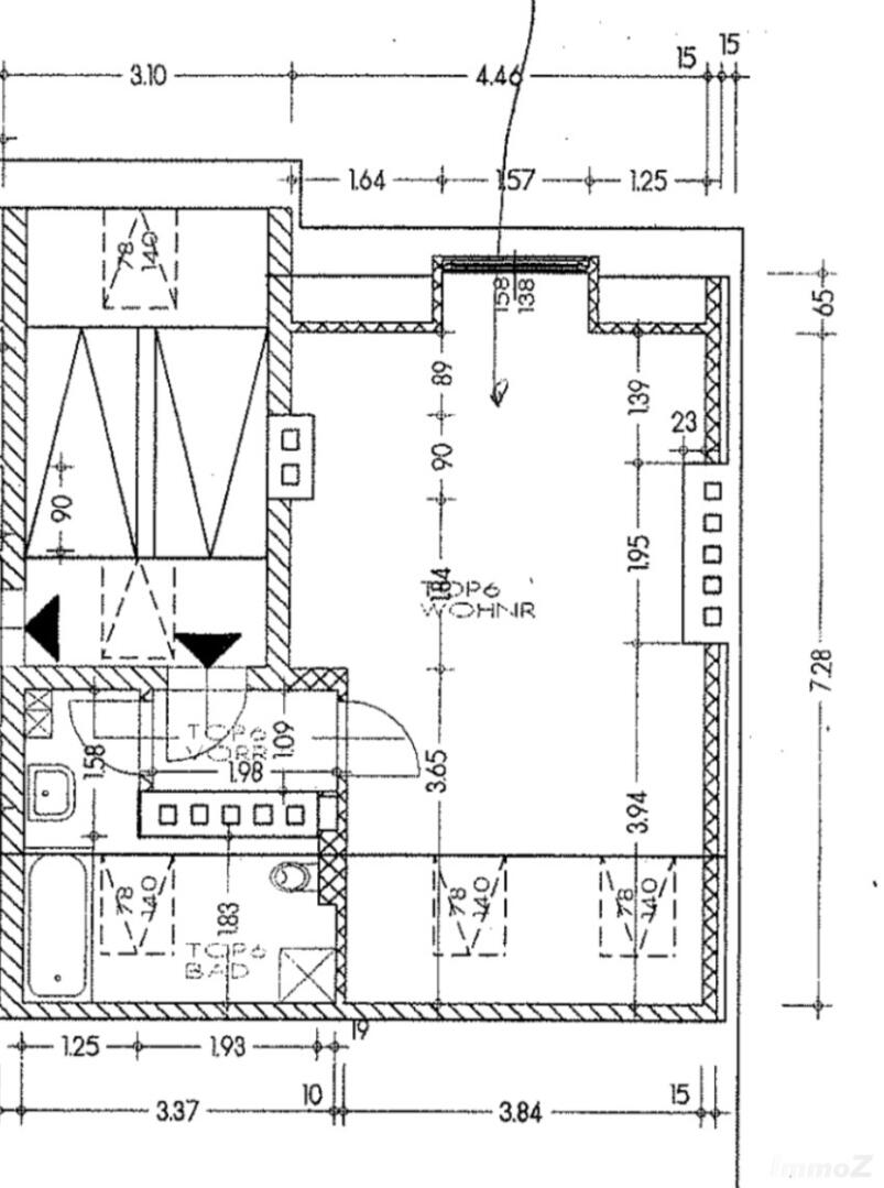 Aufteilung: Vorraum, Bad mit WC, Wohn-Ess-Küche.