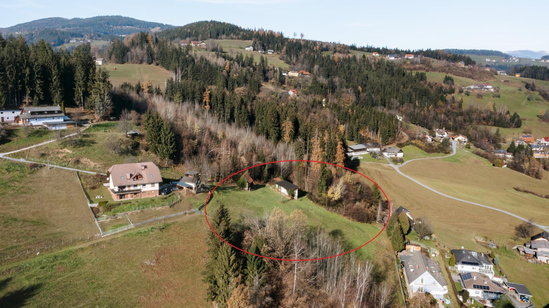 Dieses herrliche Grundstück liegt in einer erhöhten Aussichtslage am Waldrand in der Marktgemeinde Maria Lankowitz - ein idyllischer Wallfahrtsort rund 30 Minuten westlich von Graz.
