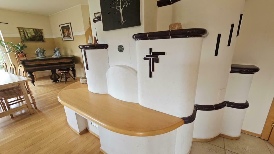 Kachelofen mit Sitzgelegenheit sorgt für eine behagliche Atmosphäre. Zusätzlich gibt es ein