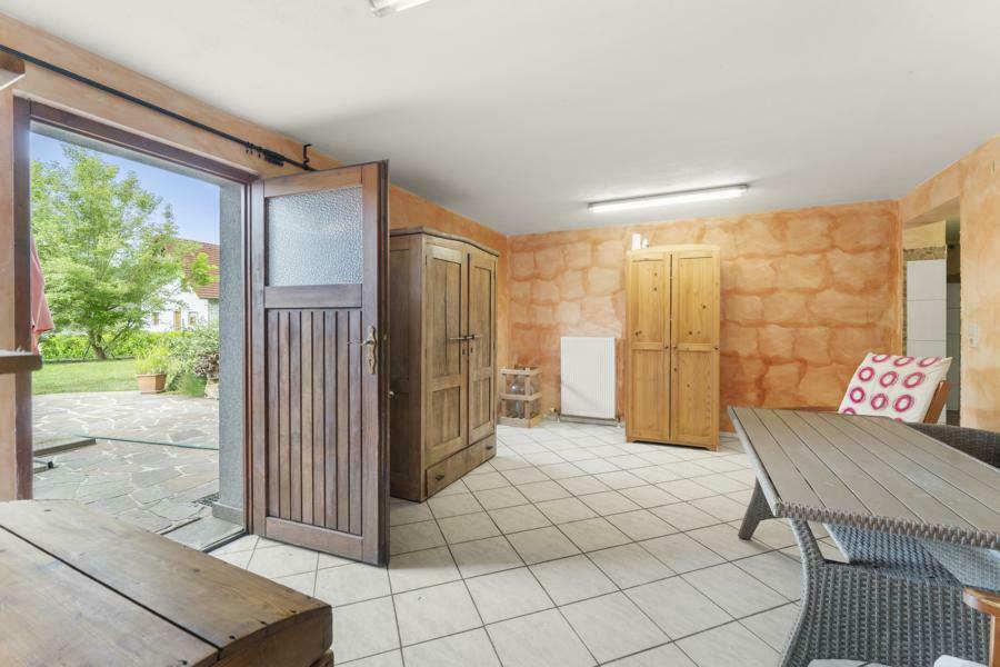Wohnfläche nutzbar. Der Keller bietet drei sanitäre Anschlüsse sowie einen Wirtschaftsraum, einen Fitnessraum und einen Hobbyraum. Zudem gibt es einen direkten ebenerdigen Zugang in