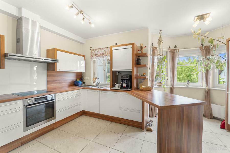 gestaltete Wohn-Essbereich mit einer modernen, neuwertigen Markenküche. Ein gemütlicher