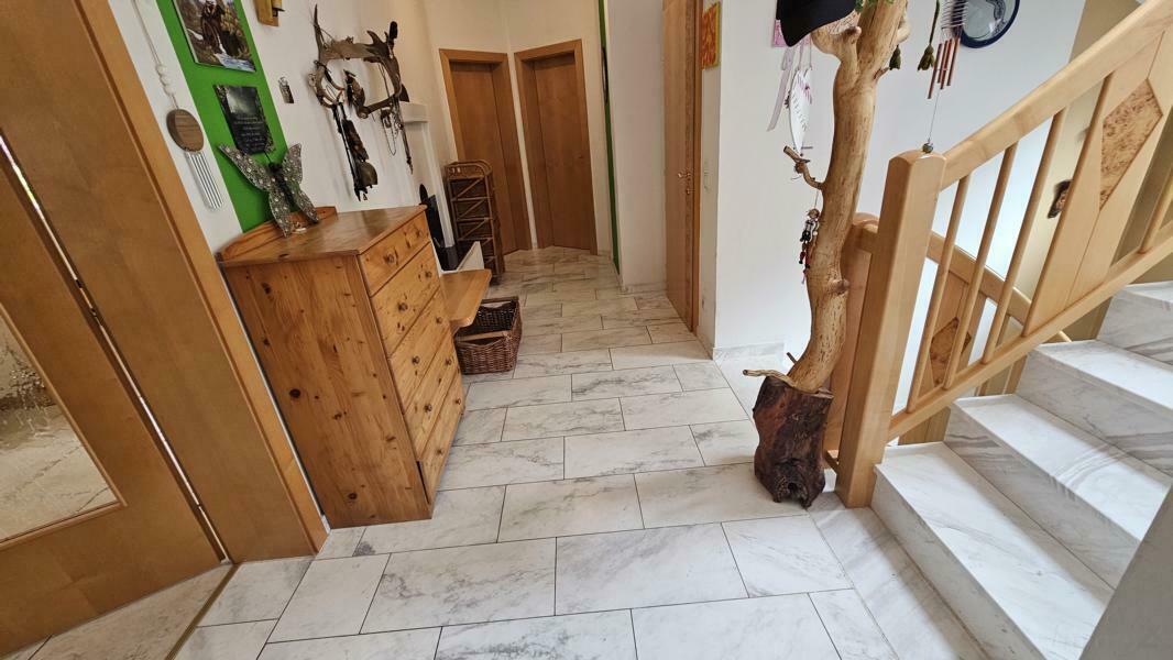 Erdgeschoss mit Fußbodenheizung ausgestattet. Flur und Stiegenhaus sind mit edlem Marmor