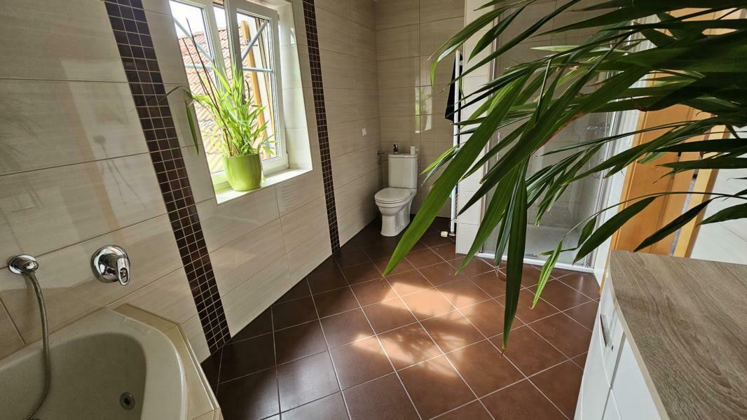 Gästezimmer, ein separates WC sowie ein Badezimmer mit Dusche. Teilweise ist das