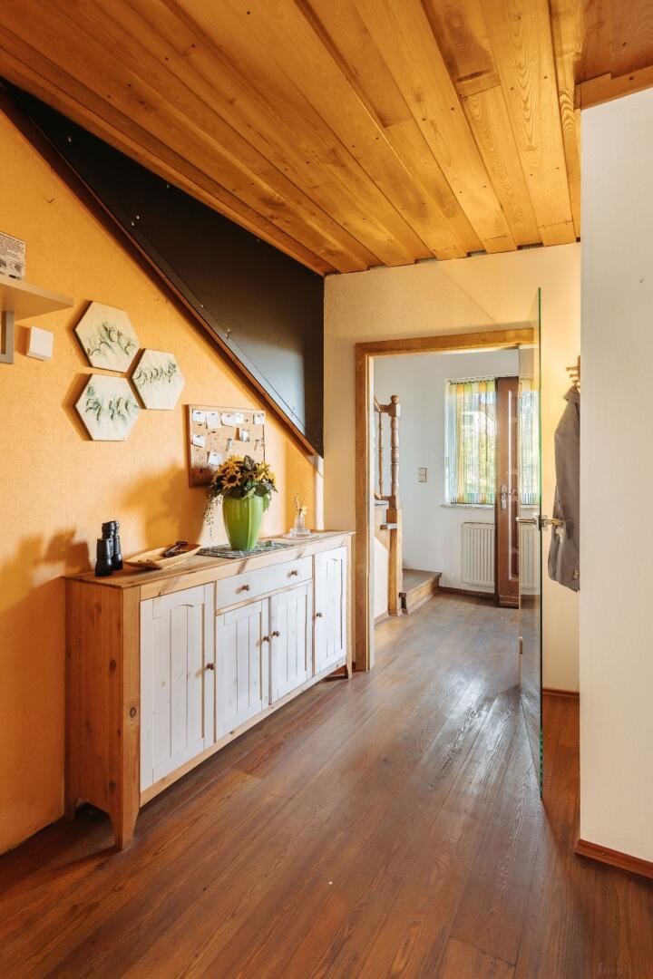 Das Haus wurde im Jahr 1981 in zwei getrennte Wohnbereiche (Erd- und Dachgeschoss) errichtet. Im Keller findet man viel Stauraum, Heizung sowie eine 2-fach Garage mit elektrischem Tor. Durchs Doppelcarport finden viele Fahrzeuge ihren Platz. Im hinteren Bereich des Grundstückes befindet sich eine Gartenhütte mit rund 35 m².