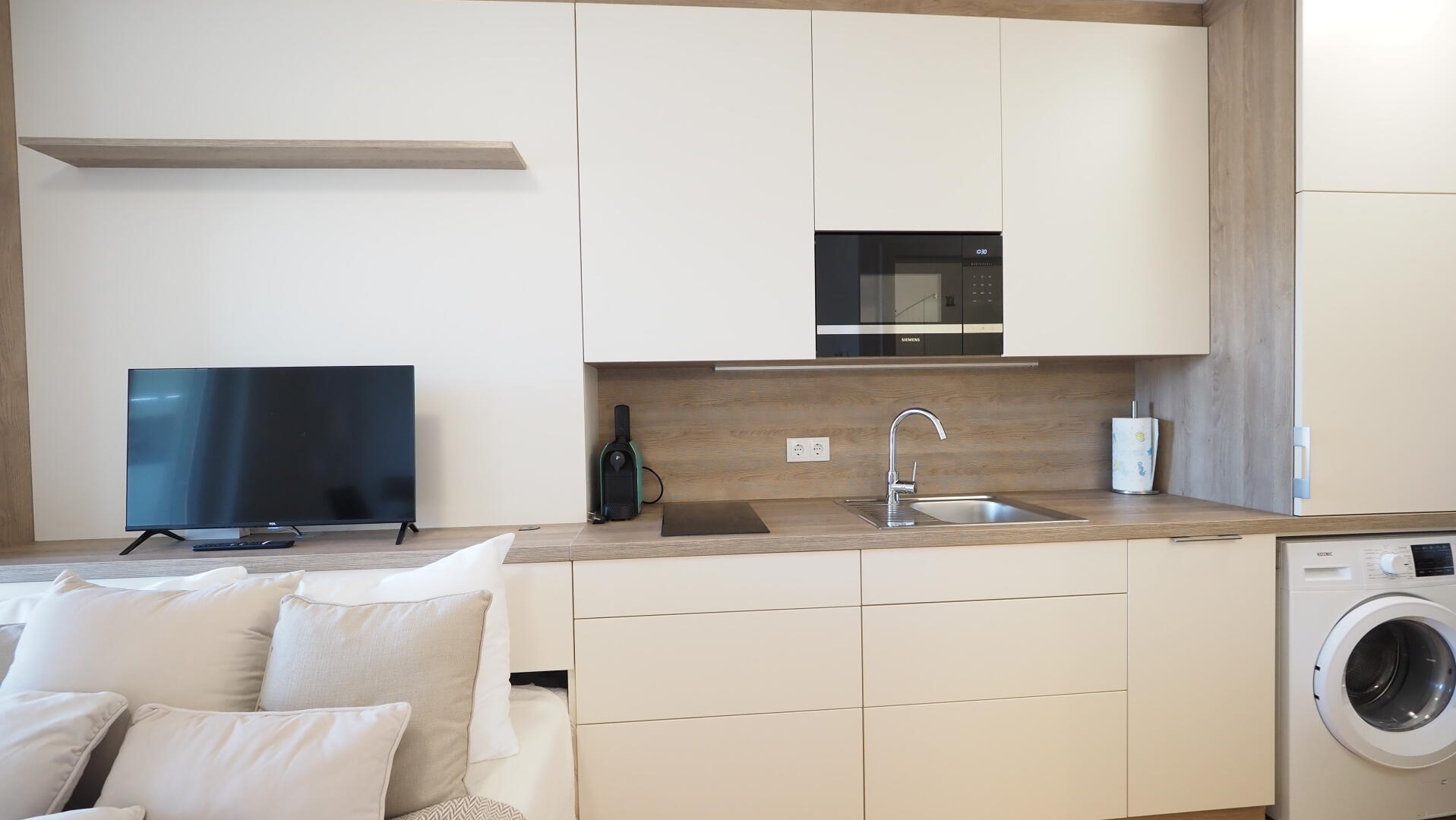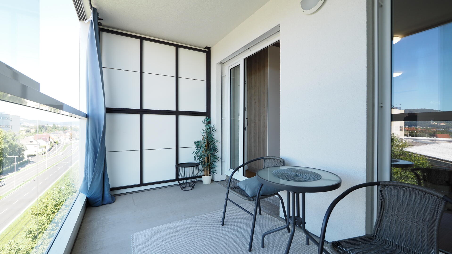 Wohnung und Ausstattung sind modern, freundlich und hell gestaltet, die Loggia ist westseitig mit großen Glaselementen (wintertauglich). Ein riesiger Dachgarten verbindet alle Gebäudeteile und lädt zum Verweilen oder Spazieren ein.